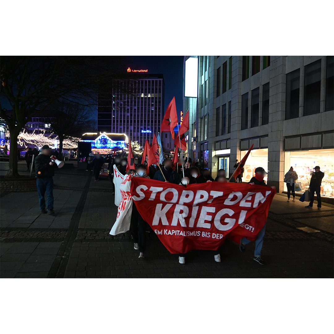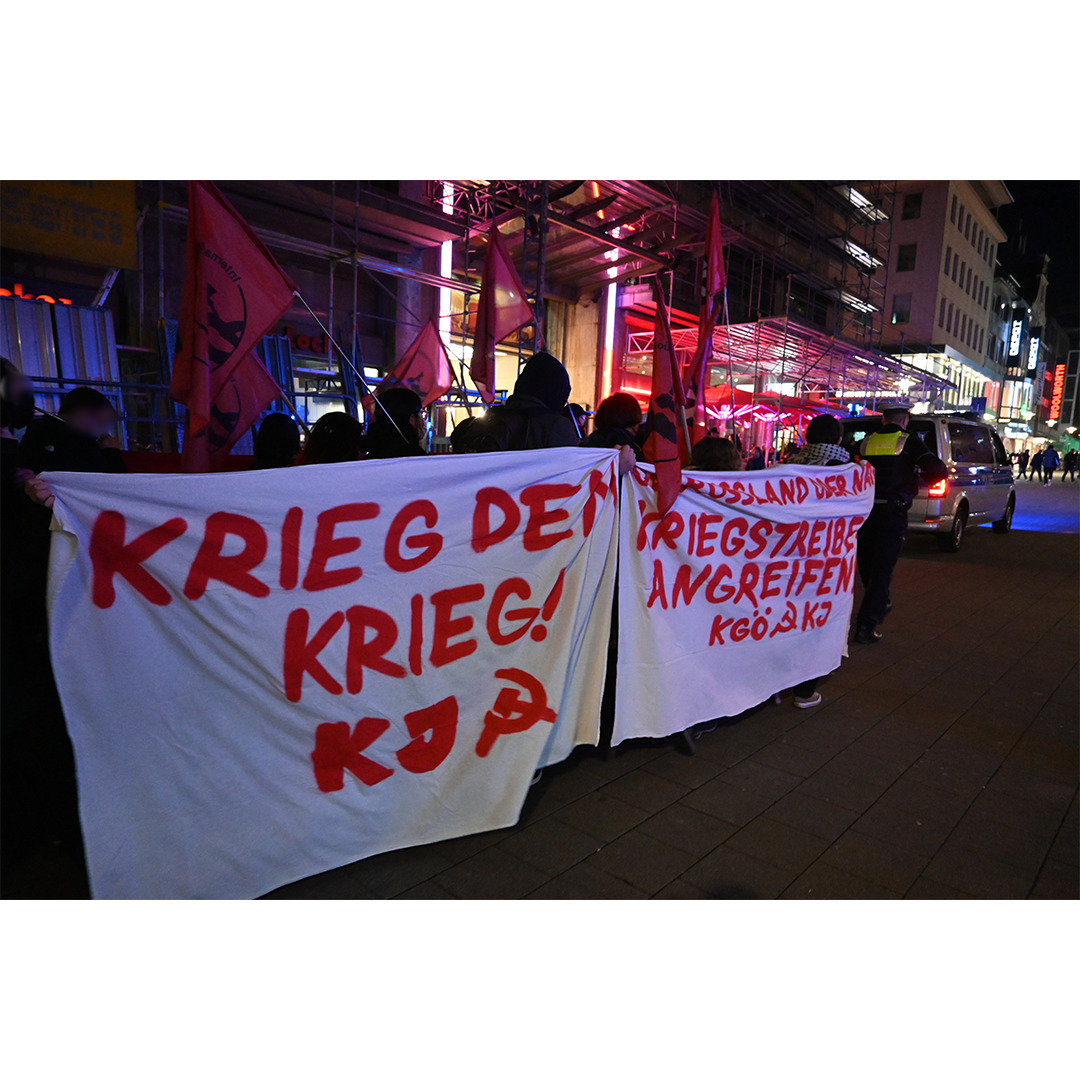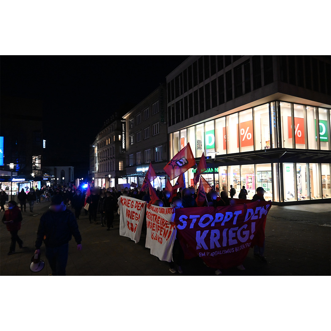 Danke an alle die mit uns auf der Straße waren, das war aber erst der Auftakt! In den nächsten Wochen und Monaten gilt es weiter aktiv zu bleiben und gegen diesen Krieg zu kämpfen. Dabei gilt auch gegen die jetzt neu beschlossenen Waffenlieferungen und Truppenverlegungen von der deutschen Regierung zu kämpfen. Für eine klassenkämpferische Antikriegsbewegung!