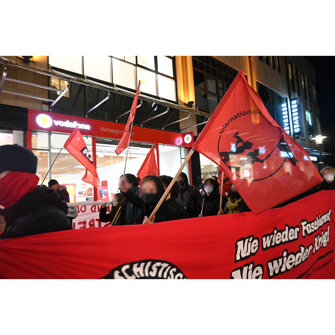 Gestern gingen wir mit 300 Menschen bei der spontan von uns organisierten Antikriegsdemo in Essen auf die Straße! Mit einem kämpferischen und lauten Demozug liefen wir durch die Essener Innenstadt und erhielten viel Zuspruch von den Passanten, einige Jugendliche schlossen sich auch spontan an. In den Redebeiträgen und Parolen machten wir und andere teilnehmende Organisationen klar, dass wir uns weder auf die Seite des russischen oder ukrainischen Staates stellen, sondern wir solidarisch an der Seite der ukrainischen und russischen Arbeiter:innen und Bevölkerung stehen, die jetzt am meisten unter diesem Krieg leiden müssen. Weder die NATO, noch Russland ist für uns eine Alternative!