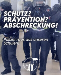Wir sind aber aufgeregt und wütend – ihr Spiel mit unserem Leben geht uns gegen den Strich. Sie rüsten auf, nutzen die Forschung an den Unis, um ihre Kriegstechnologien weiter zu entwickeln. Sie investieren 100.000.000.000 in die Bundeswehr, schicken Jugendoffiziere in die Schulen und jetzt reden sie von Wehrpflicht. Es reicht!